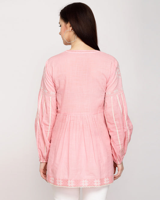 Women's Rosy Pink Cotton Embroidered Top By Room9 The Popup Store