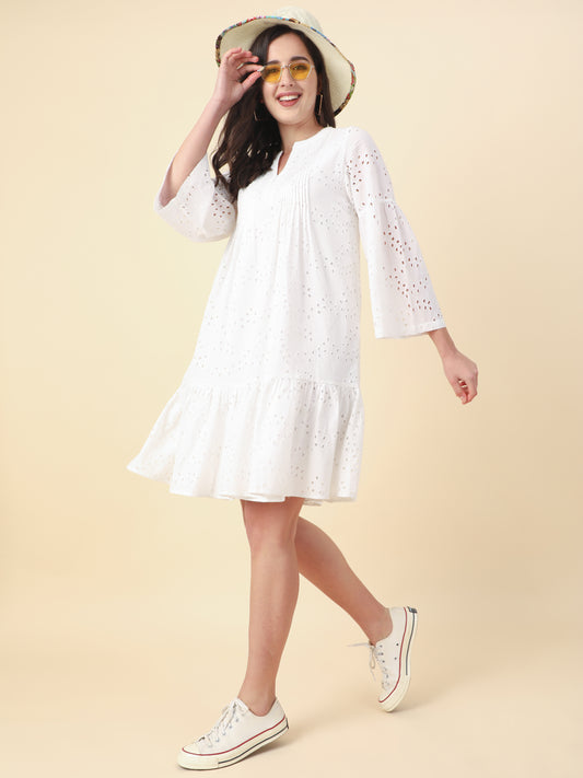 Women's White Cotton A- Line Dress By Room9 The Popup Store
