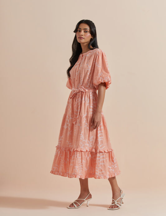 Women's Peach A-Line Puffed Sleeves Dress By Room9 The Popup Store