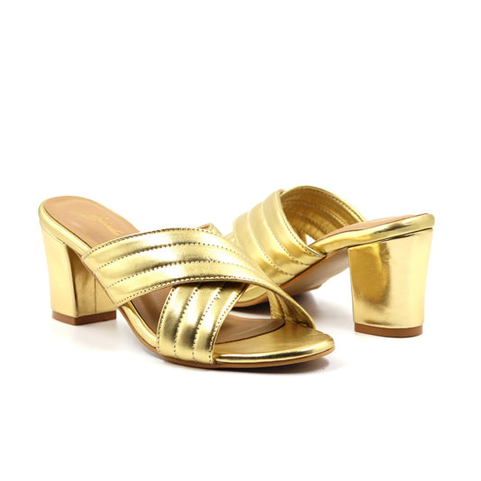 Women's YS112 Cross Strap Gold Block Heels By Room9 The Popup Store
