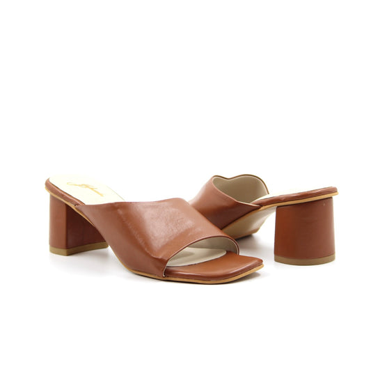 Women's YS111 Cross Strap Skin Brown Block Heels By Room9 The Popup Store