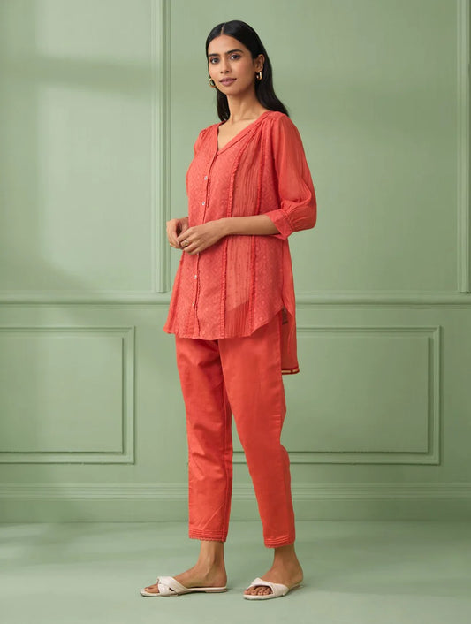 Women's Coral Shirt with Pants (Set of 3) By Room9 The Popup Store