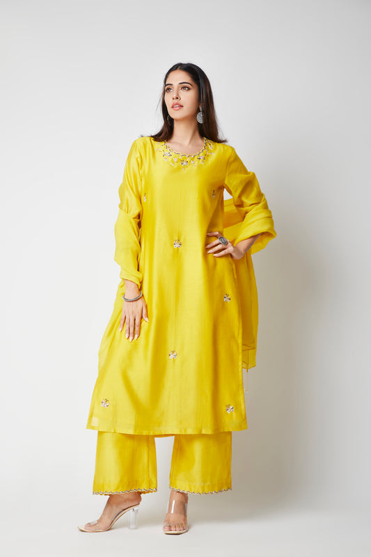 Women's Golden Sunburst Handcrafted Yellow Chanderi SuitSet By Room9 The Popup Store