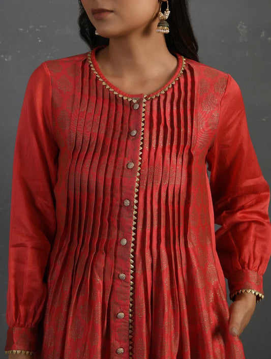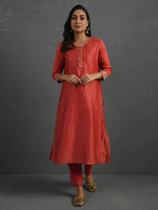 Women's Pink Gota Kissed Chanderi Kurta & Pant (Set of 2) By Room9 The Popup Store