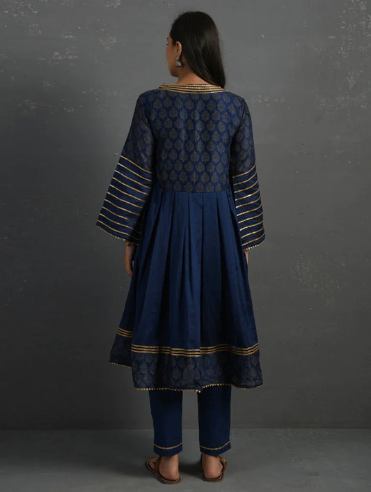 Women's Indigo Gota Kissed Chanderi Kurta & Pant (Set of 2) By Room9 The Popup Store