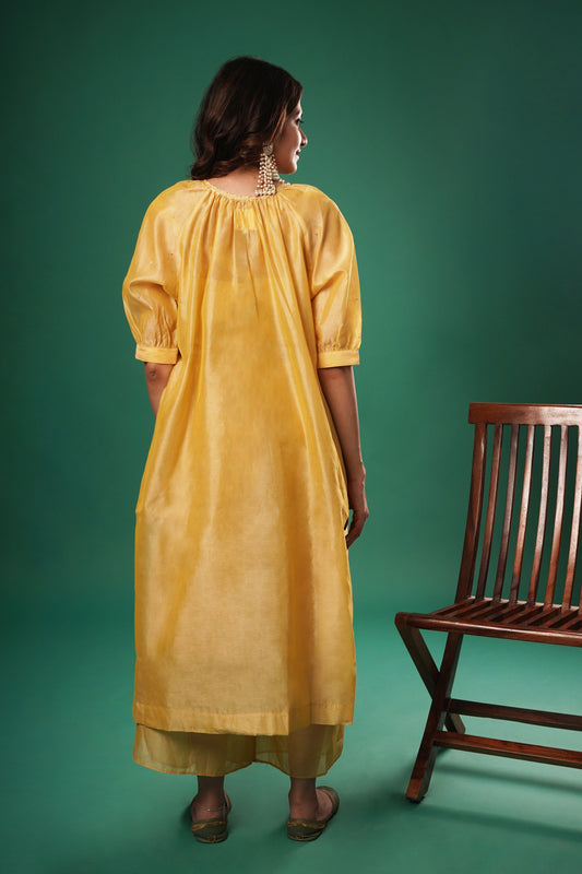 Women's Yellow Chanderi Muqaish Work A-Line Set By Room9 The Popup Store