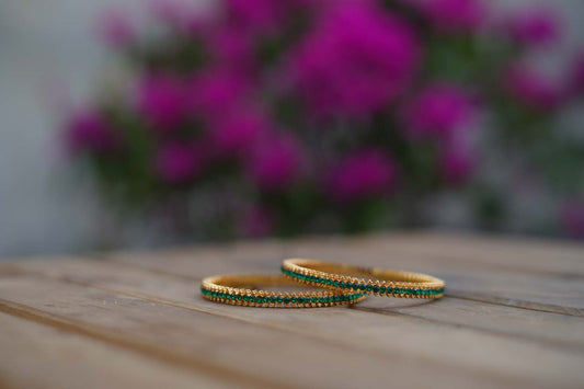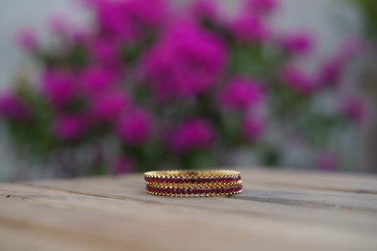 Women's Golden Glow Duo: Brass Bangles with Radiant Red Stones By Room9 The Popup Store