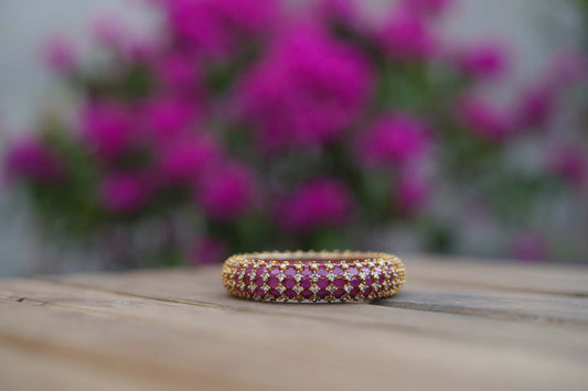 Women's Radiant Crimson Splendor: Golden Bangle with Ad Stones By Room9 The Popup Store