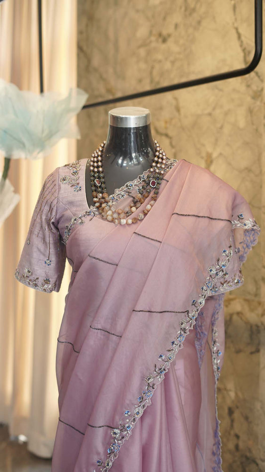 Women's Lilac Organza Saree By Room9 The Popup Store