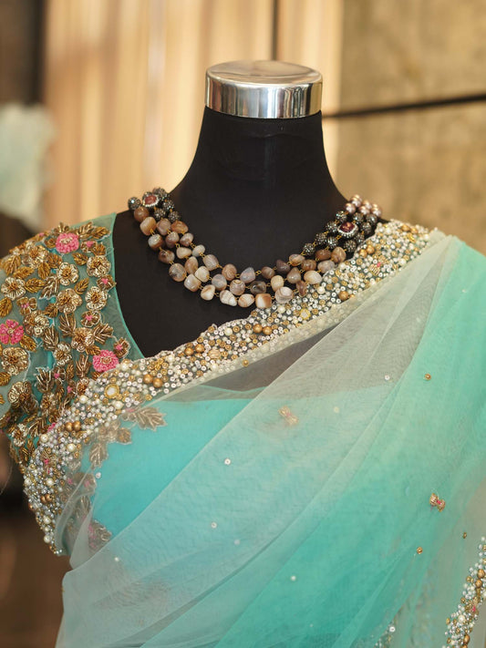 Women's Ocean Hues Organza Saree By Room9 The Popup Store
