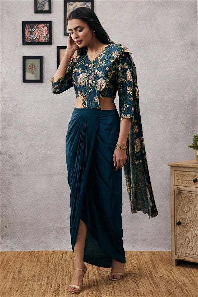 Women's Windance Printed Pre-Stitched Saree With Top By Room9 The Popup Store