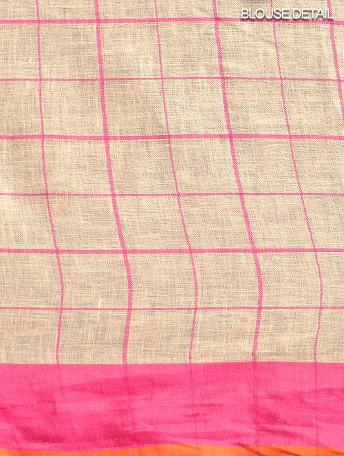 Women's Ivory Orange linen saree By Room9 The Popup Store