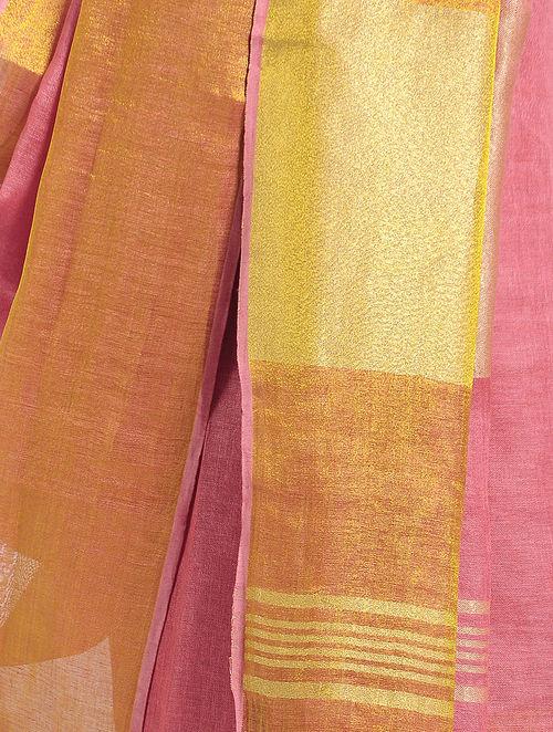 Women's Coral Pink linen zari saree By Room9 The Popup Store