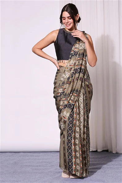 Women's Ikaya Printed Pre-Stitched Saree With Blouse By Room9 The Popup Store