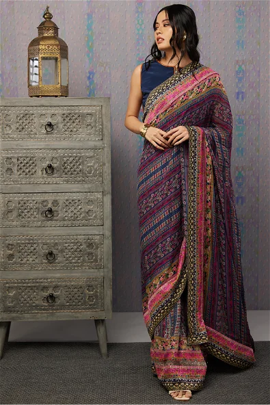 Women's Applique Printed Pre-Stitch Saree By Room9 The Popup Store
