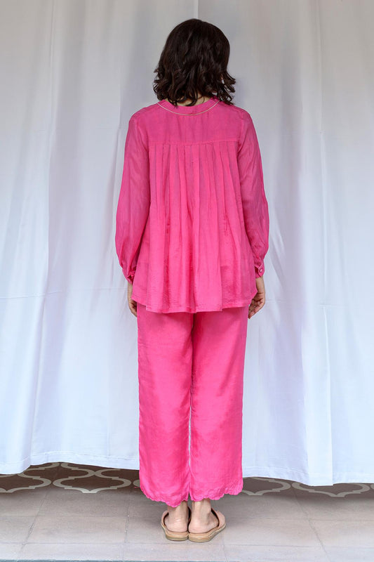 Women's Fuchsia Viscose Tabby Thread Hand Embroidered Top By Room9 The Popup Store