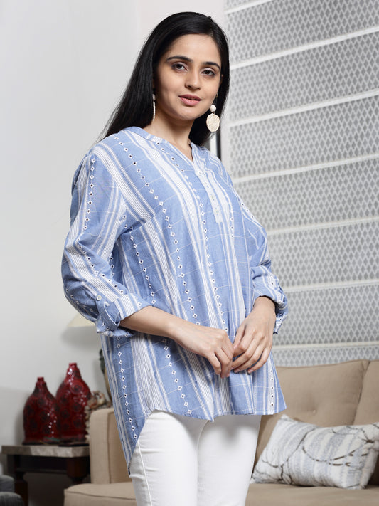 Women's Blue Embroidered High-Low Tunic By Room9 The Popup Store