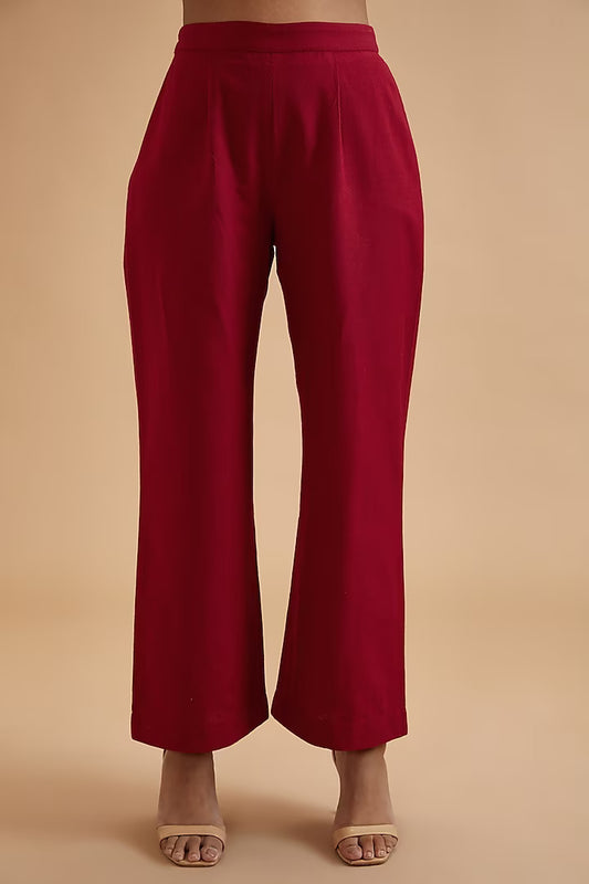 Women's Red Handloom Cotton Wide-Legged Culottes By Room9 The Popup Store